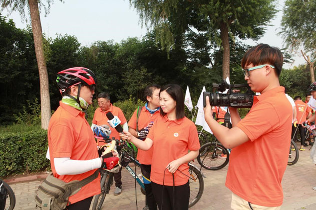 愛心騎行活動得到了山東齊魯電視臺的極大關注,記者現(xiàn)場采訪騎行隊員!