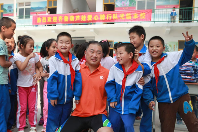 孩子們看到騎行隊員帶去的禮物露出天真的笑臉,孩子們的快樂也是所有騎行隊員最大的安慰。