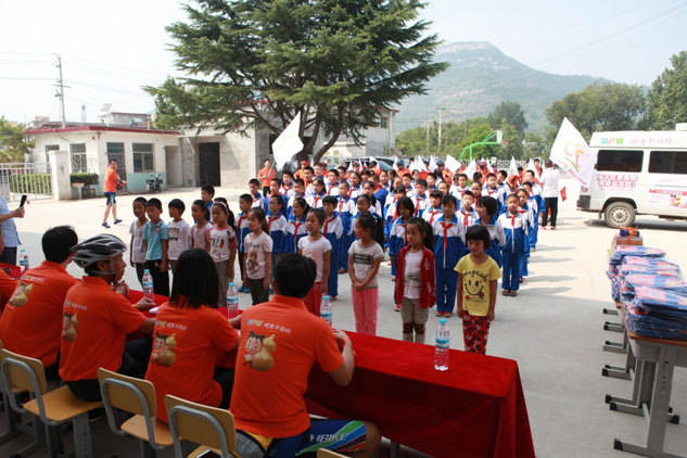 為愛騎行,隊員們擁有一個夢想:“把溫暖與愛傳遞給山區(qū)的小朋友”。在伙伴們相互鼓勵不斷加油中,大家順利地騎行到終點站高而鄉(xiāng)出泉溝小學,騎行全程32公里。