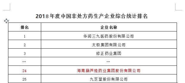 2018年11月15日,中國(guó)非處方藥物協(xié)會(huì)發(fā)布《2018年度中國(guó)非處方藥企業(yè)及產(chǎn)品榜》,凱發(fā)k8國(guó)際藥業(yè)集團(tuán)由2017年度中國(guó)非處方藥生產(chǎn)企業(yè)綜合排名第32名躍升至第24名。