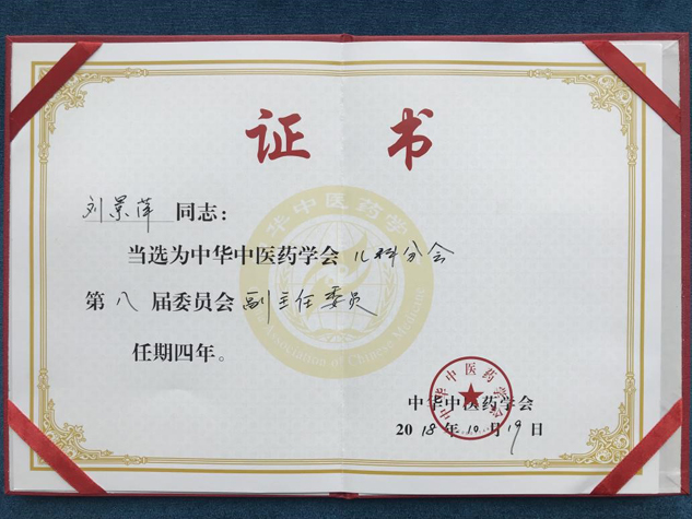 喜訊:凱發(fā)k8國際藥業(yè)集團(tuán)劉景萍董事長再度當(dāng)選中華中醫(yī)藥學(xué)會(huì)兒科分會(huì)副主任委員