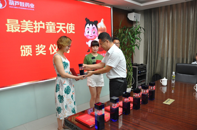 ▲集團(tuán)質(zhì)量總監(jiān)劉萍為“最美護(hù)童天使”頒獎(jiǎng)