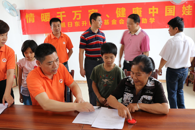 ▲旭日東升慈善基金會與受助者監(jiān)護人簽訂捐贈協(xié)議