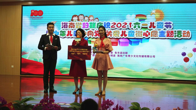 海南省婦聯(lián)主席種潤(rùn)之代表海南省婦聯(lián)向全省的少年兒童致以節(jié)日的問(wèn)候,并向給予活動(dòng)愛(ài)心支持的海南省旭日東升慈善基金會(huì)等企事業(yè)單位表示衷心的感謝!