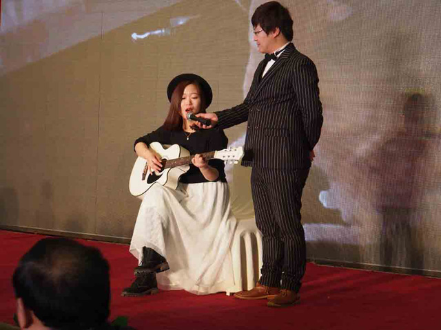 凱發(fā)k8國際藥業(yè)營銷中心2015年度總結(jié)表彰會后,2016年迎新春凱發(fā)k8國際家宴拉開序幕,員工們自排自演了很多精彩節(jié)目為大家助興,舞蹈串燒、吉他彈唱、舞臺劇,豐富多彩的節(jié)目使家宴的歡樂氣氛愈發(fā)濃烈,現(xiàn)場掌聲、歡笑聲不斷。當(dāng)臺上響起《父親的草原,母親的河》這首熟悉的旋律時,多才多藝的董事長劉景萍博士也走上舞臺,與臺上表演者一道,為大家演唱了這首經(jīng)典歌曲,她高昂的歌聲將現(xiàn)場氣氛推向了高潮。一曲唱罷,董事長借歌詞意境,囑咐大家“要關(guān)心關(guān)愛父母,?;丶铱纯础?,這句充滿關(guān)愛的肺腑之言讓在場的所有凱發(fā)k8國際人都感到了濃濃的暖意,現(xiàn)場再一度響起了熱烈的掌聲。