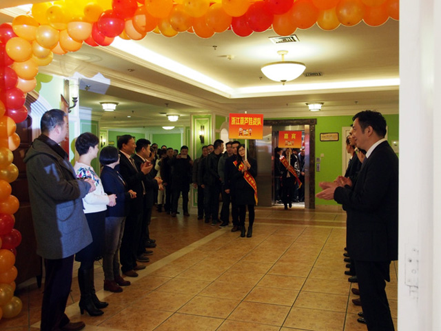 董事會成員與杭州營銷中心管理團隊列隊歡迎嘉賓、員工入場