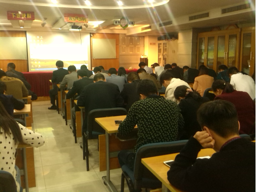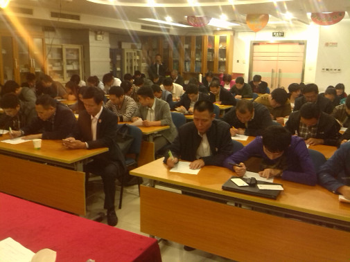晚上不但對(duì)全體人員進(jìn)行閉卷考試,而且對(duì)參會(huì)的全體大區(qū)經(jīng)理進(jìn)行了模擬實(shí)戰(zhàn)演講。
