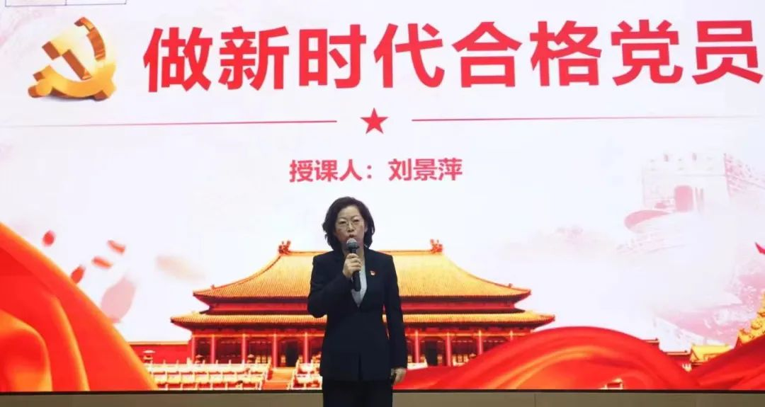 隨后,集團黨委書記、董事長劉景萍為全體黨員和管理干部帶來了題為《守紀律 講規矩 做新時代合格黨員》的黨課,南寧、杭州、來賓等分會場的黨員也通過連線方式參與學習。