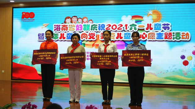 海南省婦聯(lián)主席種潤(rùn)之代表海南省婦聯(lián)向全省的少年兒童致以節(jié)日的問(wèn)候,并向給予活動(dòng)愛(ài)心支持的海南省旭日東升慈善基金會(huì)等企事業(yè)單位表示衷心的感謝!