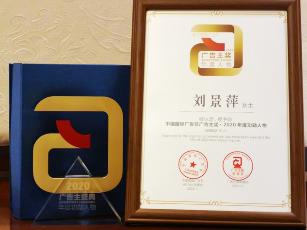 凱發(fā)k8國際藥業(yè)集團(tuán)劉景萍董事長喜獲“中國國際廣告節(jié)廣告主獎(jiǎng)?2020年度功勛人物”榮譽(yù)