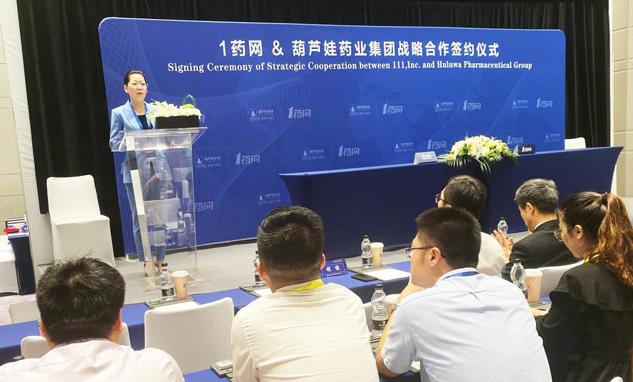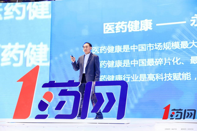 ▲1藥網執(zhí)行董事長于剛在簽約儀式上致辭